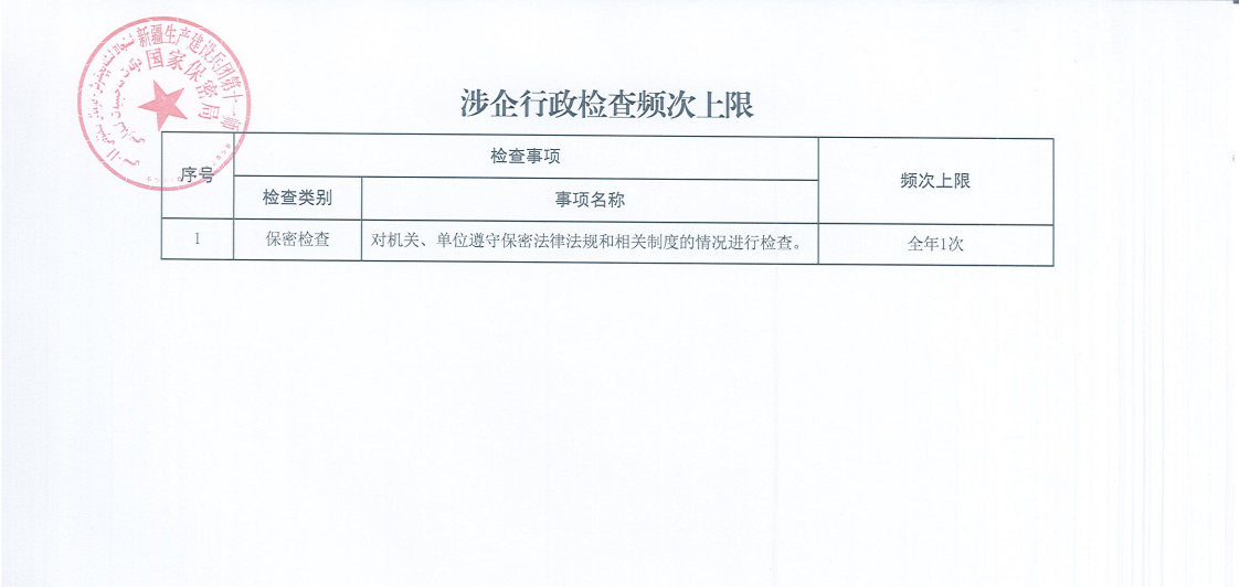 第十一师保密局涉企行政检查频次上限