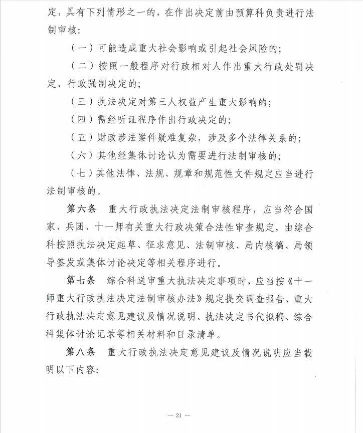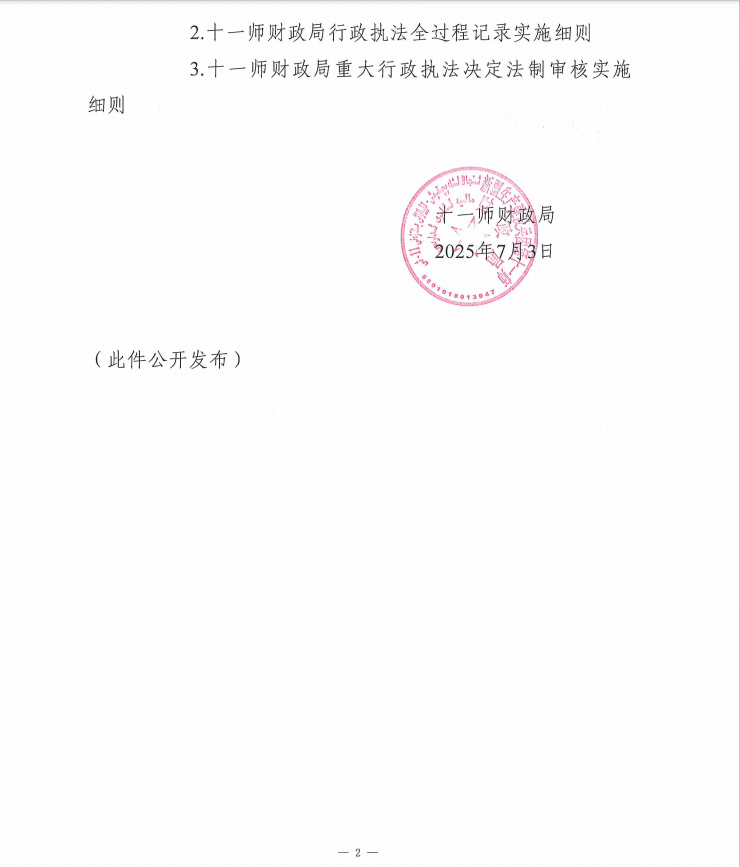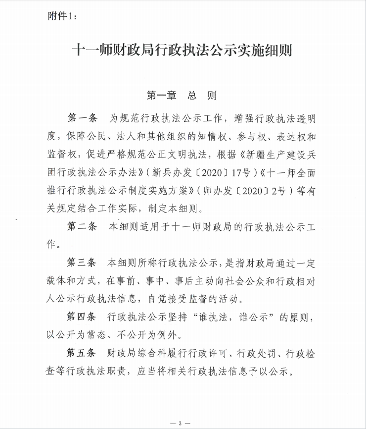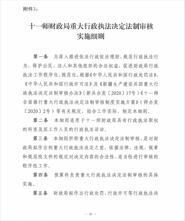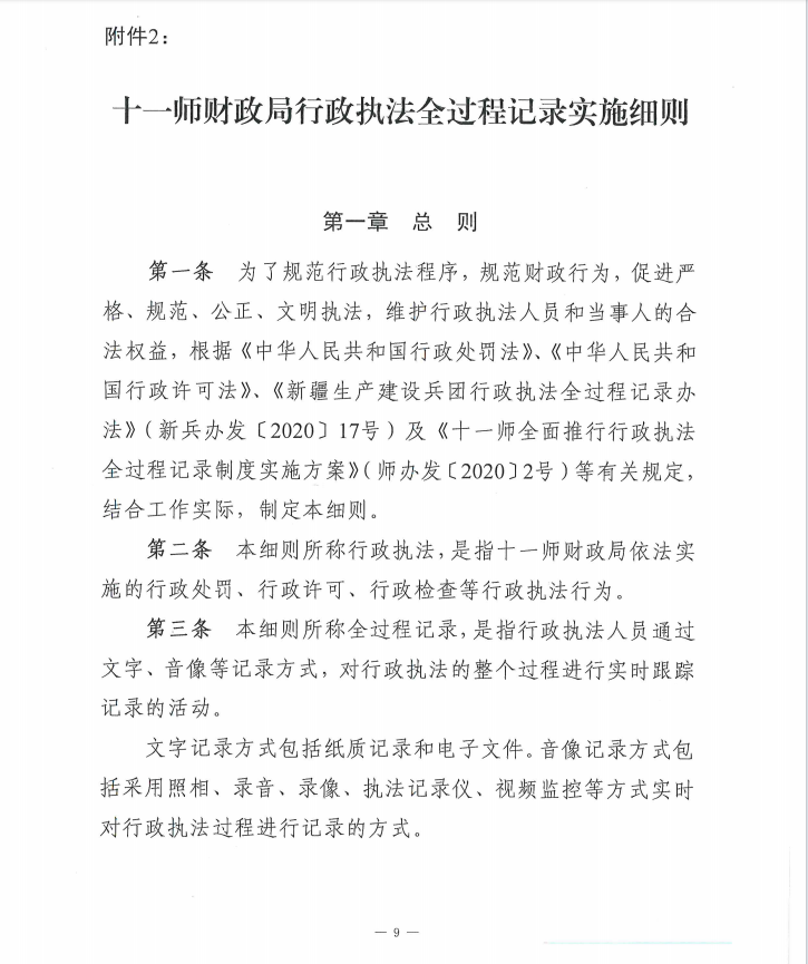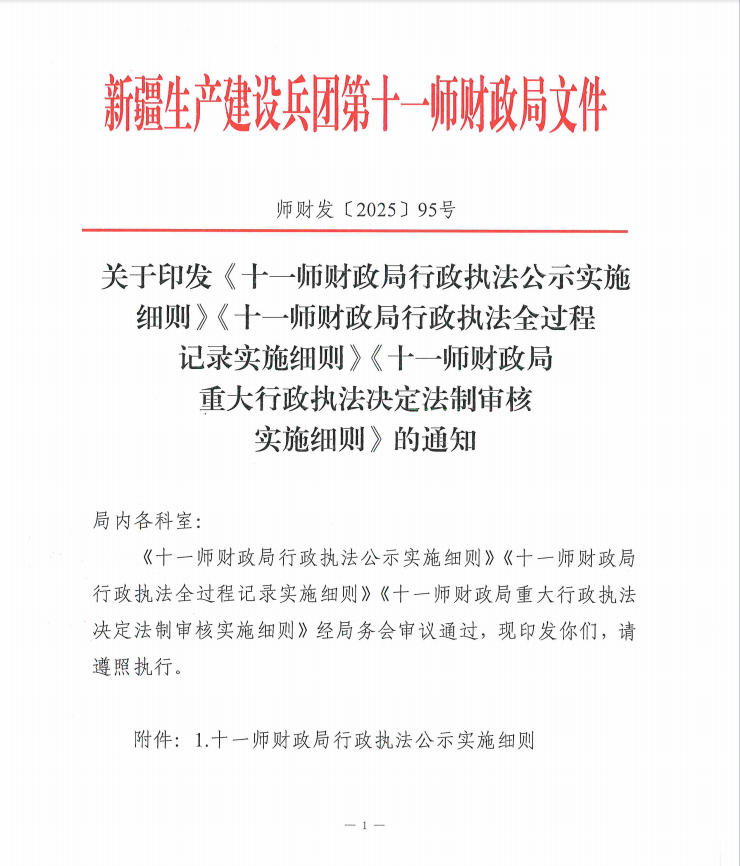 关于印发《十一师财政局行政执法公示实施细则》《十一师财政局行政执法全过程记录实施细则》《十一师财政局重大行政执法决定法制审核实施细则》的通知