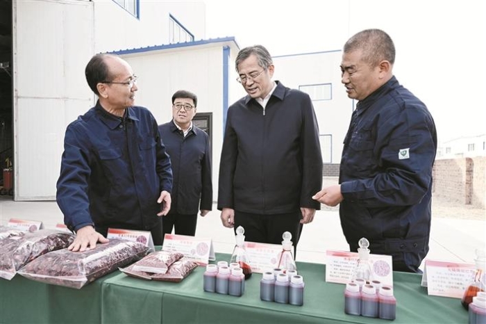 10月23日,自治区党委副书记、兵团党委书记、政委何忠友在二师铁门关市调研。这是何忠友在农产品加工相关企业调研,详细了解企业产品线和生产经营情况。 兵团日报全媒体记者 张鑫 摄