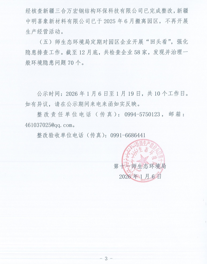 关于第十一师第一轮兵团生态环境保护督察反馈意见(序号31)整改完成情况的公示