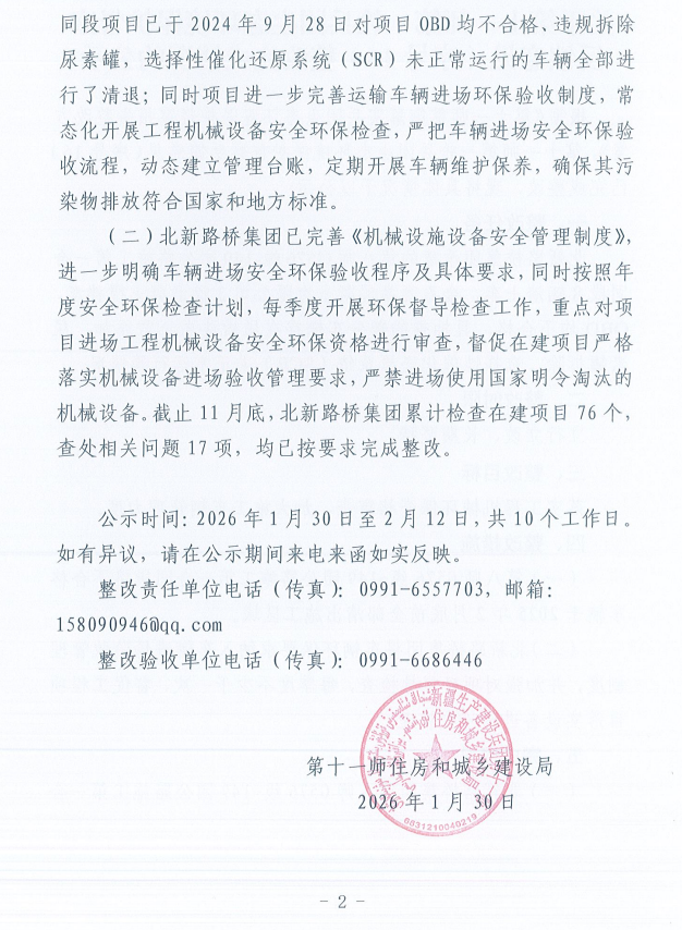 关于第十一师第一轮兵团生态环境保护督察反馈意见(序号17)整改完成情况的公示