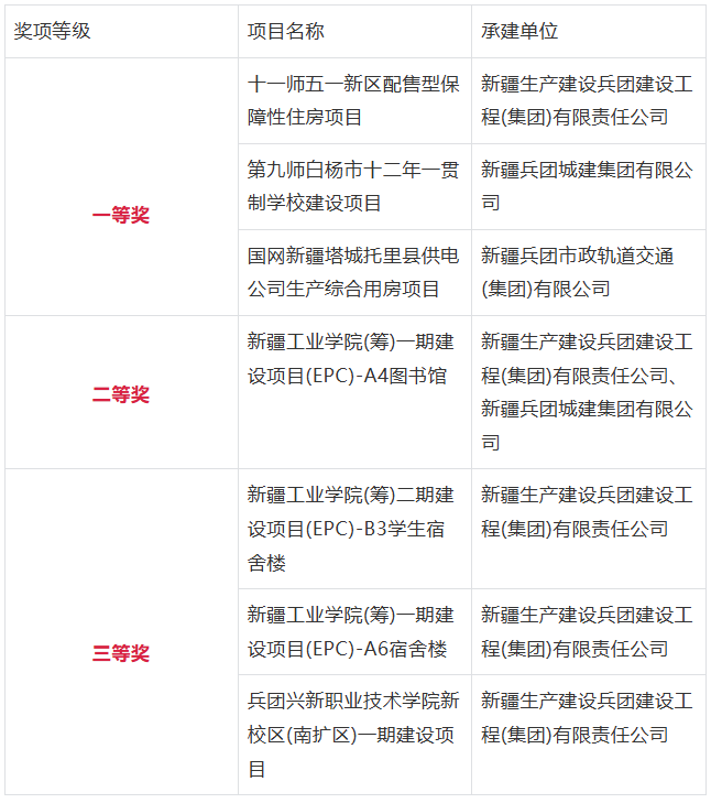 近日,新疆生产建设兵团建筑业协会公布兵团2025建设工程项目绿色建造、绿色施工技术竞赛活动结果。十一师所属企业凭借过硬的技术实力与精细化管理,共有7个承建项目获奖,其中一等奖3项、二等奖1项、三等奖3项,获奖数量与质量均位居兵团前列,充分展现了十一师在绿色建造领域的领先水平。